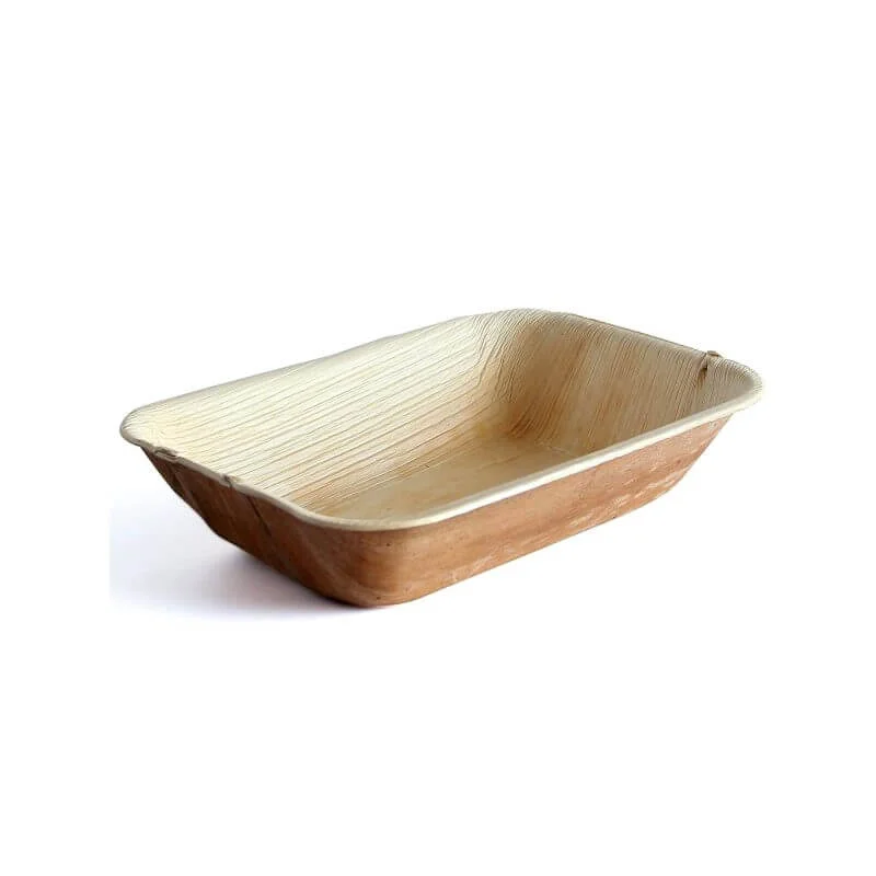 This Palm Leaves Rectangle Bowl is simply ideal for mobile catering. They are completely natural and compostable and can easily be thrown away with the food remains. These plates are much sturdier than other available paper disposable plates. Their natural woody texture and aroma add to their fine finishing at the same time making them much more elegant. These Bowles are bio-degradable and saves the environment. They are lightweight and durable. This 5 x 6 Inches Rectangle Bowl is just the right size for a snack or to serve small portions in any event.
